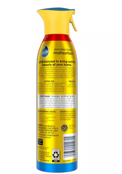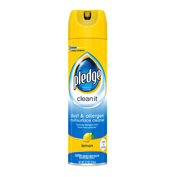 Pledge, 9.7 oz, Aerosol, Dust and Allergan Furniture Polish, New Formula, Removes up to 90% of Alergans in Dust From Pet Dander and Dust Mite Matter, Fewer VOC Gases, Non-Flammable Preserves The Natural Beauty of All Your Wood Furniture, Paneling, Cabinets and More, Protects Wood from Becoming Dry.